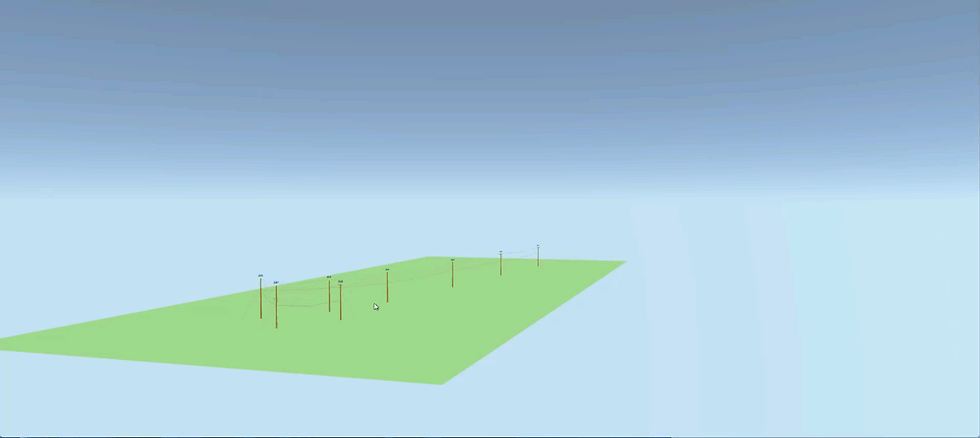 Cables on poles aren't rendered until they're traced in a midspan. In the example above, the cables are drawn in a midspan to the right but have not yet been rendered for the midspan to the left because they have not been traced to that midspan yet. If the traced cables do not have a height, whether measured or manually entered, their default height will be 0.